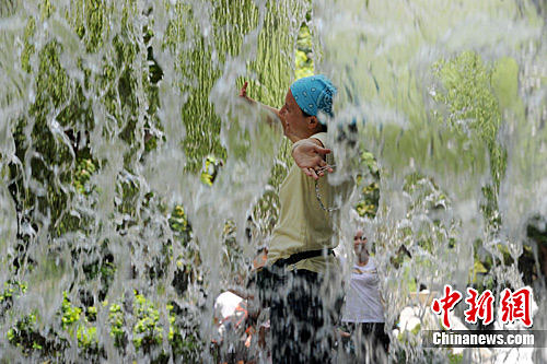 7月13日,炎炎夏日里香港公园瀑布总是人见人爱的景观。当日,香港天文台发出了酷热天气的警讯。但在本周未,热带风暴“康森”将影响香港地区。中新社发 郑祚声 摄