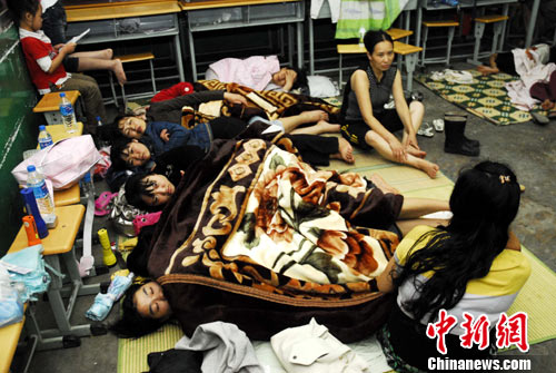 图为临时安置点内的灾民。中新社发 田洪 摄