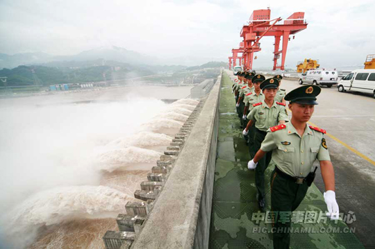 图:三峡大坝守坝官兵经受最大洪峰考验(2)
