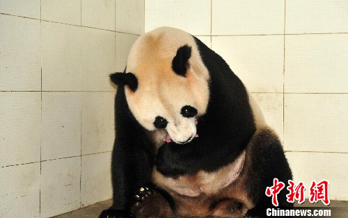 图:卧龙大熊猫“菊笑”初次产仔(2)