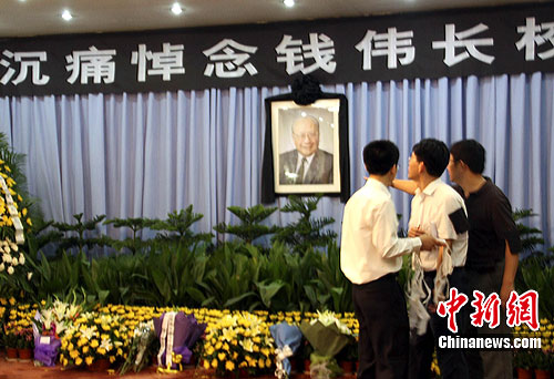 上海大学校园内布置灵堂悼念钱伟长