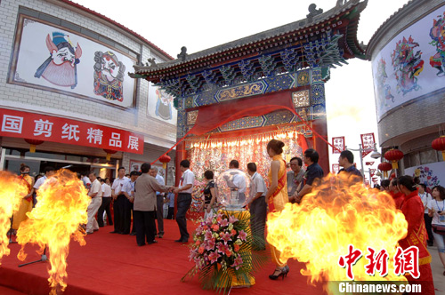 8月2日上午,位于河北蔚县的中国首条“剪纸一条街”盛装开街。41位来自中国剪纸非遗项目传承地的艺术家们,聚集一堂各显其能,展示风格各异的剪纸艺术精品。据悉,剪纸一条街将成为中国剪纸艺术的重要交流场所和永久性营销市场。