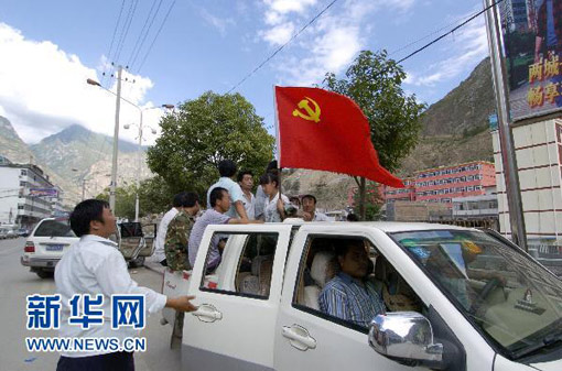 8月8日,舟曲县立节乡政府组织的救援队抵达舟曲县城准备实施救援。高健钧 摄