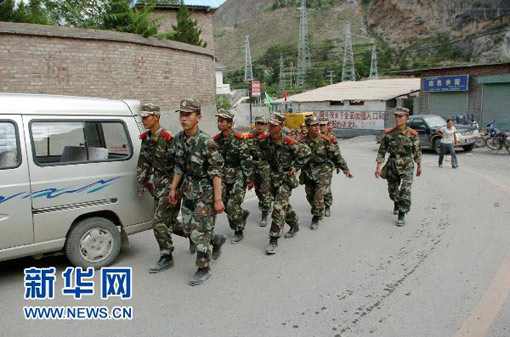 8月8日,执行救援任务的武警官兵。高健钧 摄