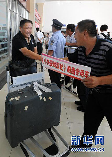 8月26日,到达伊春的旅客走出机场安全区。当日,于8月25日暂停使用的黑龙江省伊春市林都机场恢复使用,开始正常航班起降。李勇 摄