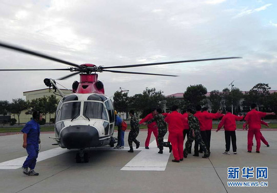 9月8日,救助直升机运送被困人员返回机场。朱峥 摄
