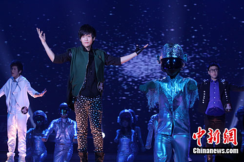 2010年“快乐男声”9月11日凌晨正式落幕,在近5个小时的激烈比拼中,来自广州唱区的“实力偶像”李炜终凭不凡唱功夺冠。中新社记者 邓霞 摄