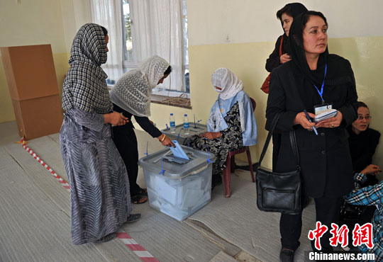 图为阿富汗民众在喀布尔投票点投票。
