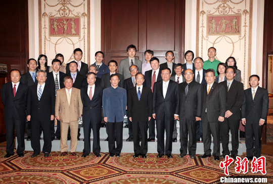 当地时间9月22日,中国国务院总理温家宝在纽约与美国华文媒体和港澳媒体负责人座谈,并回答了媒体负责人们的提问。座谈结束后,温家宝与当地华文媒体和港澳媒体负责人和员工代表合影留念。中新社发 魏晞 摄
