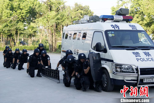 9月下旬,广西北海市特警联合、巡警、交警等多警种举行反劫持演习。 中新社发 翟李强 摄