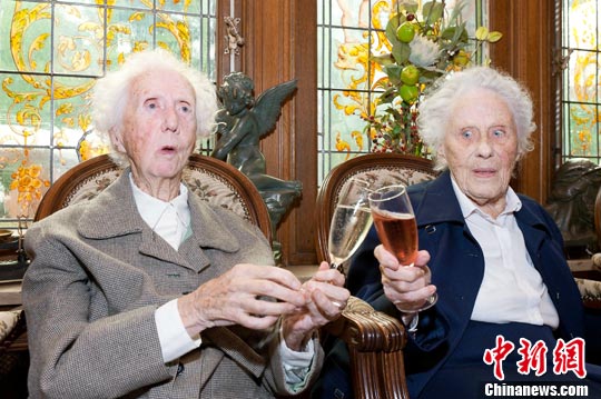 图:世界最年长双胞胎迎百岁寿诞(2)