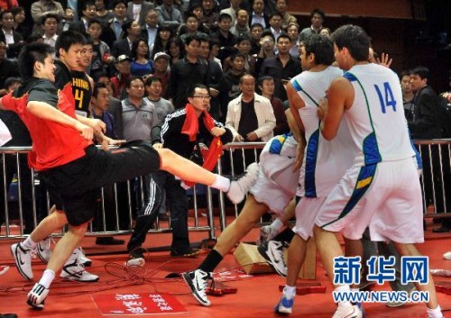 男篮亚运热身赛 中国与巴西爆发群殴 (4)