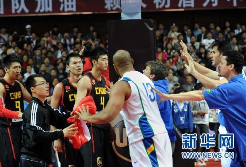 男篮亚运热身赛 中国与巴西爆发群殴 (5)