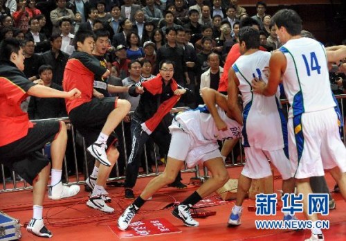 男篮亚运热身赛 中国与巴西爆发群殴 (9)