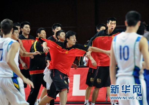 男篮亚运热身赛 中国与巴西爆发群殴 (11)