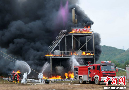 中新网南昌10月14日电(何柳斌 石卫明)10月12日至14日,江西景德镇举办第二届“瓷都警察节”,期间进行的“2010我们的使命”实战演练,分为分列式、紧急疏散和搜排爆、处置骚乱事件、灭火救援、追击和反劫持五个部分。