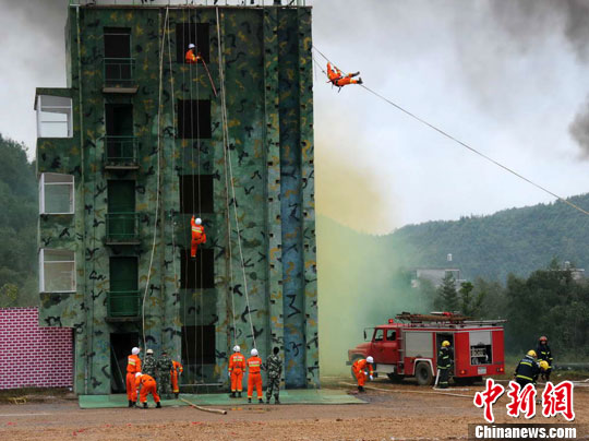 10月12日至14日,江西景德镇举办第二届“瓷都警察节”,期间进行的“2010我们的使命”实战演练,分为分列式、紧急疏散和搜排爆、处置骚乱事件、灭火救援、追击和反劫持五个部分。石卫明 摄