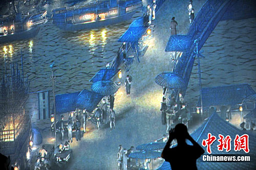 11月8日,“智慧的长河──电子动态版清明上河图”展览于香港亚洲国际博览馆举行新闻界预展。康文署表示,相信市民有足够时间及充裕地方,欣赏整幅“清明上河图”,亦相信秩序不会混乱。中新社发 谭达明 摄