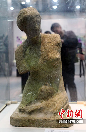 11月24日,河南郑州,用熊猫大便做成维纳斯在河南美术馆展出。由成都著名雕塑家朱成指导9个成都青少年游戏般地用熊猫大便翻制了这个世界著名的雕塑,后被来自瑞士的著名艺术收藏家乌利·希克以30万的价格收购。中新社记者 王中举 摄