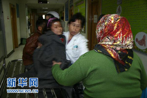 11月29日,一名受伤学生被送到医院。图片来源:新华网