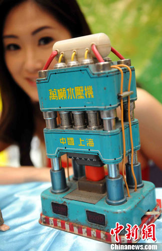 香港一商场于9日起举行“圣诞铁皮玩具展”,展出过百件在民间收集十多年的收藏品。其中中国丁业史著名的上海江南造船厂"万吨水压机"造型的玩具,估值十万元人民币。