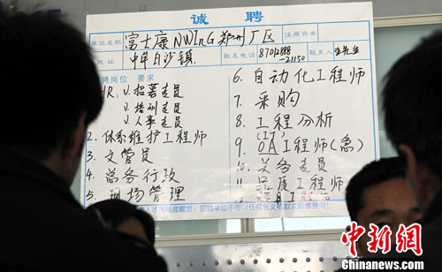 12月11日,河南郑州,富士康公司在河南省人才市场招聘新员工。中新社记者 王中举 摄