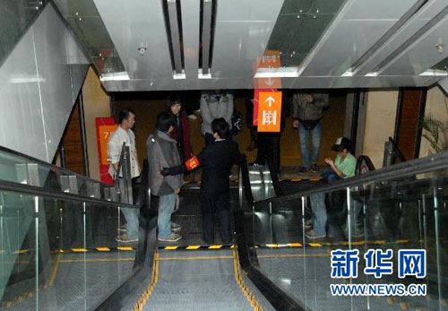 12月11日16时30分许,北京西单大悦城七层通往八层的电梯处,工作人员劝阻来看电影的观众离开。张宇摄