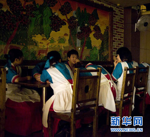 12月11日晚,西单大悦城的一家餐厅因火灾导致停电无法营业,服务员在店里等待消息。刘杰 摄