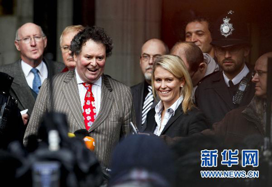 12月16日,“维基揭秘”网站创始人朱利安·阿桑奇的律师马克·史蒂芬斯(前左)在英国高等法院对媒体宣布阿桑奇获准保释。