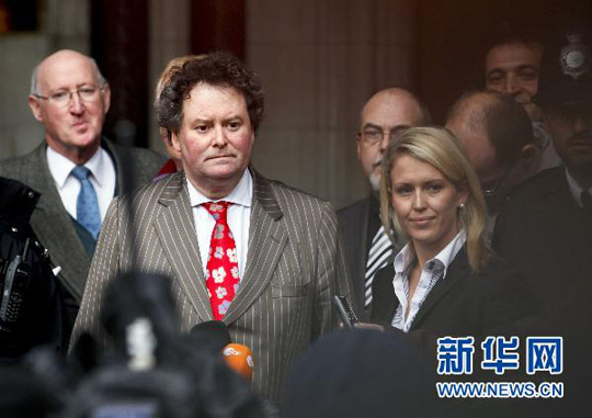 12月16日,“维基揭秘”网站创始人朱利安·阿桑奇的律师马克·史蒂芬斯(前左)在英国高等法院对媒体宣布阿桑奇获准保释。