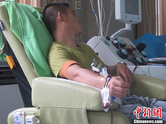 4日上午,大批长春市民来到中心血站献血,支援宝源丰禽业公司火灾中的伤患救治。图为市民在进行献血 陈博宜 摄