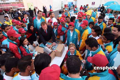 多哈当地时间十二月十五日下午,第十五届亚运会各项赛事相继结束,主办者向为各项赛事提供服务的志愿者颁发奖状和纪念品。中新社发 毛建军 摄