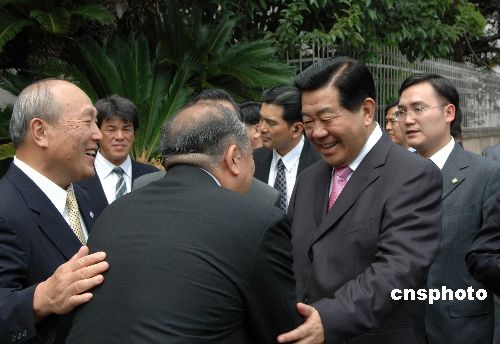 9月15日上午,正在日本进行正式友好访问的中国全国政协主席贾庆林,在国务院侨办主任李海峰等的陪同下参观旅日侨胞开设的神户中华同文学校。中新社发 滕剑峰 摄