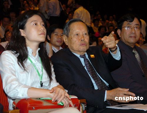 9月16日上午,诺贝尔奖获得者、著名华人学者杨振宁携妻子翁帆出席第九届世界华商大会。杨振宁将与中国著名学者余秋雨一起作客由凤凰卫视举办的“凤凰世纪大讲堂”,而此次凤凰世纪大讲堂将作为世界华商大会首场分组讨论会。中新社发 滕剑峰 摄