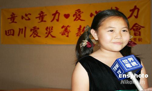 美国洛杉矶当地时间5月21日,“童心童力、爱心接力”四川赈灾筹款音乐会新闻发布会在美国洛杉矶举行,6位小演奏家(国际钢琴比赛冠军)登台献艺,所筹款项将全部捐献给中国地震灾区。中新社发 金立冬 摄