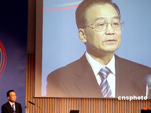 9月12日,在芬兰赫尔辛基开幕的2006年中欧工商峰会上,中国国务院总理温家宝发表了“坚持互利共赢、加强合作创新”的演讲。中新社发 孙宇挺 摄