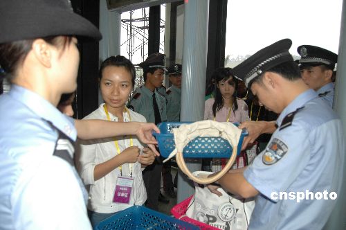 广西方面对博览会安全工作高度重视,对参加演练的人员全部进行安全检查。