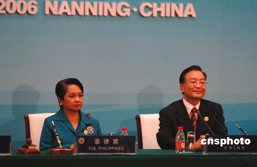 十月三十日下午,中国-东盟纪念峰会闭幕后,中国总理温家宝和菲律宾总统阿罗约共同会见记者。温家宝会见记者时说,《中国—东盟纪念峰会联合声明》为中国—东盟关系的未来发展指明了方向。中新社发 蒋雪林 摄