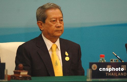 十月三十日下午,中国—东盟建立对话关系十五周年纪念峰会在中国广西南宁市开幕。会后,中国国务院总理温家宝与东盟十国领导人在会后共同签署联合声明。图为泰国总理素拉育在签字仪式上。中新社发 蒋雪林 摄