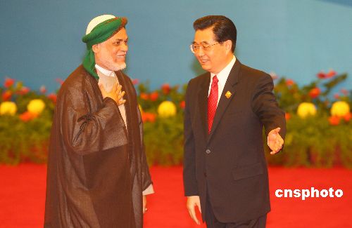 11月4日,中非合作论坛北京峰会在北京人民大会堂开幕。中国国家主席胡锦涛在大会开幕前迎接科摩罗总统桑比。中新社发 盛佳鹏 摄