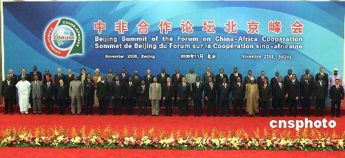 十一月五日下午,中国国家主席胡锦涛与出席中非合作论坛北京峰会的四十八国领导人,在北京人民大会堂一起合影。中新社发 毛建军 摄