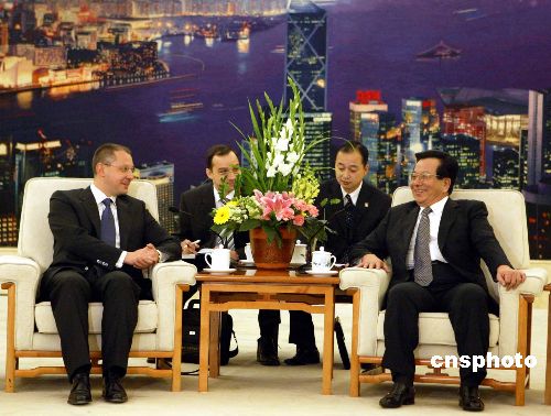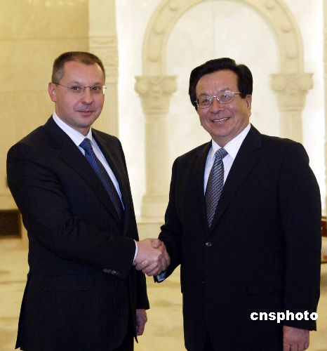十一月二十日,中国国家副主席曾庆红,在北京人民大会堂会见来华访问的保加利亚总理斯塔尼舍夫。中新社发 任海霞 摄