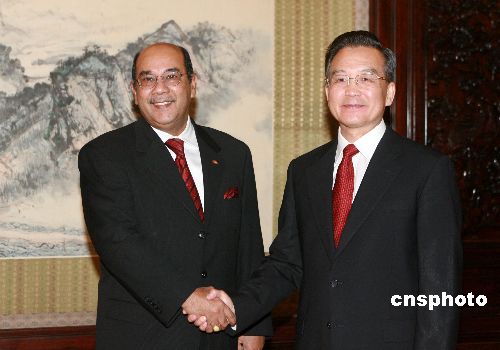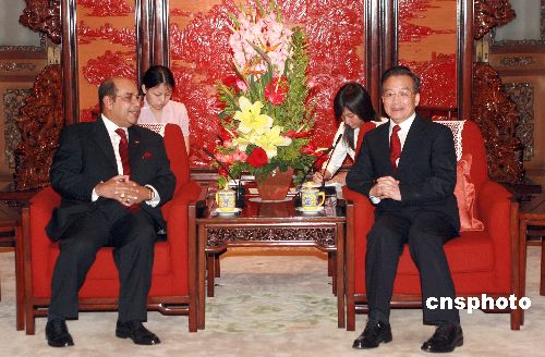 七月十二日,中国国务院总理温家宝在北京中南海紫光阁会见马来西亚外交部长达图·斯里·赛义德·哈密德·阿尔巴。中新社发 廖文静 摄