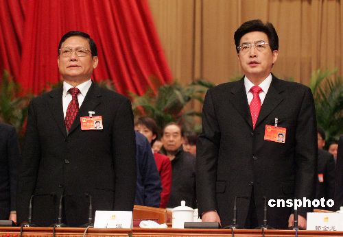 市委书记刘淇(左)、代市长郭金龙出席会议。
