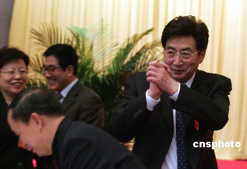 图:北京市代市长郭金龙“作揖”感谢人大代表