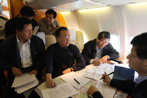 温家宝在赶往地震灾区的专机上号召干部身先士卒