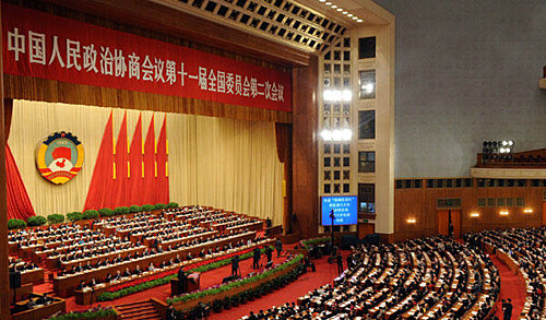 3月9日,全国政协十一届二次会议在北京人民大会堂举行第四次全体会议。杜青林主持会议。