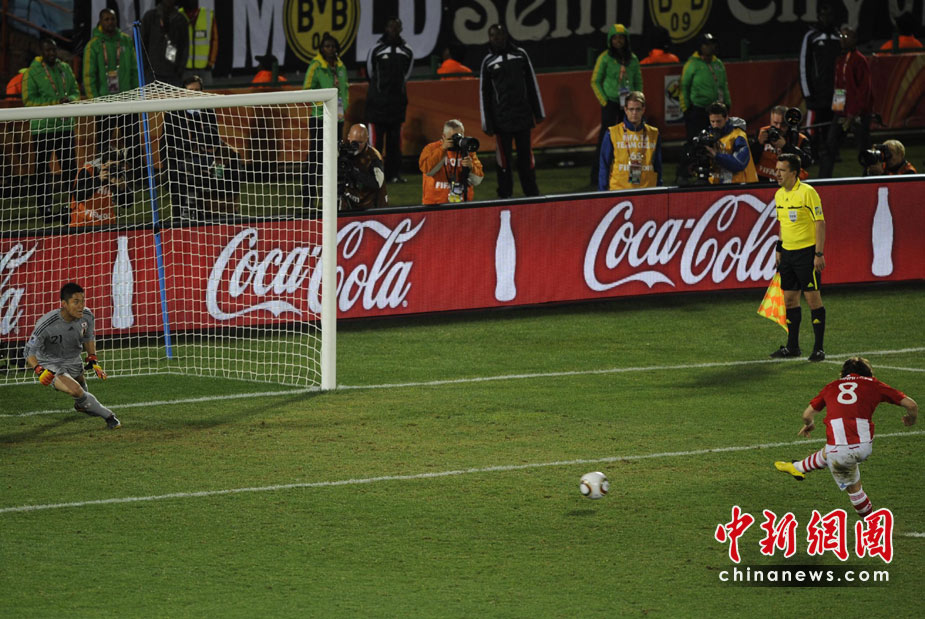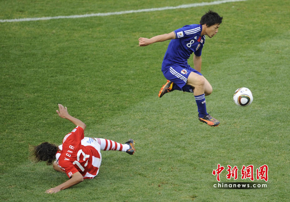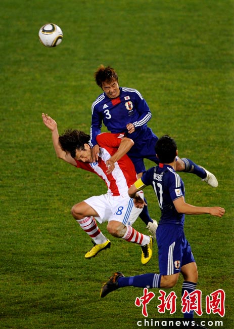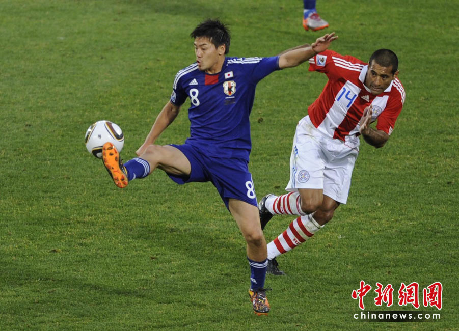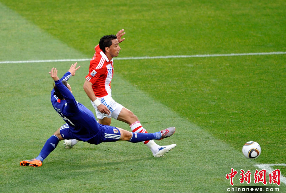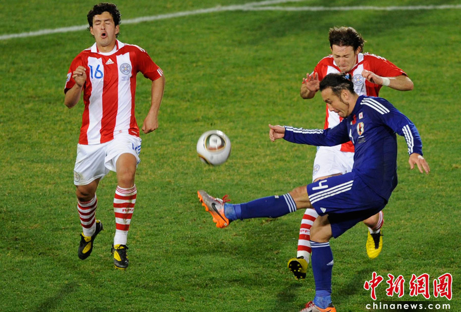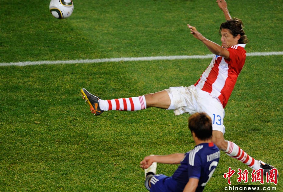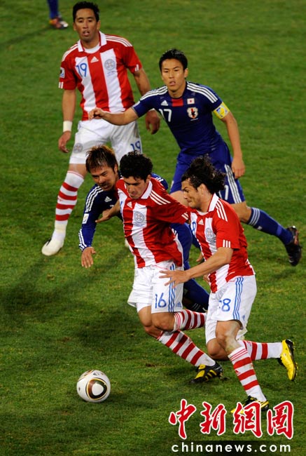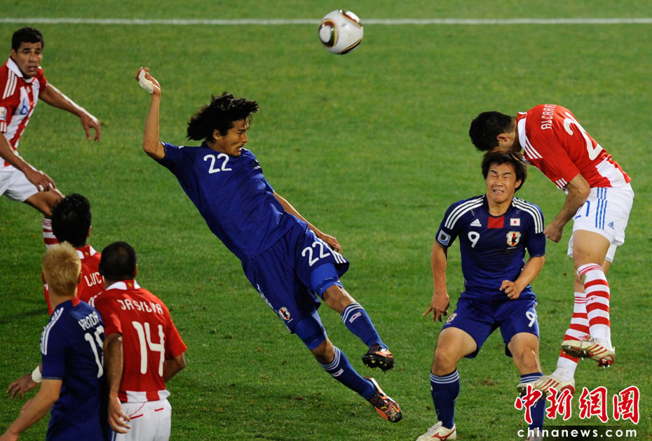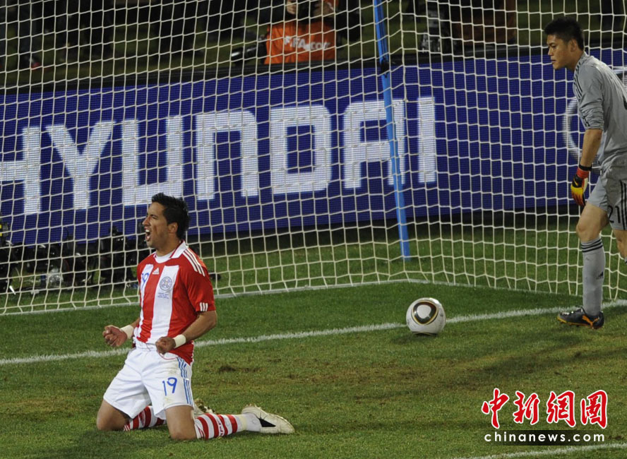 29日晚,南非世界杯1/8决赛第七场比赛比勒陀利亚的洛夫托斯球场拉开战幕,由巴拉圭队迎战日本队。120分钟比赛结束时,双方均没有建树,场上比分始终保持在0-0。在残酷的点球大战中,巴拉圭队五罚全中,以5-3击败日本,挺进八强。