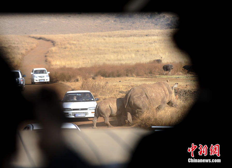 当地时间6月26日,记者前往南非豪登省狮子和犀牛公园,这里可近距离观赏野生动物。中新社记者 廖攀 摄