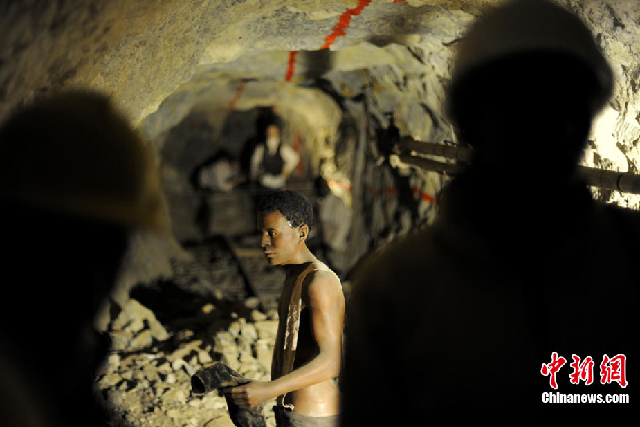 南非的金矿主要分布在奥兰治河的支流瓦尔河流域,大体成一半圆形,延伸500公里,素有“金弧”之称,而矿区主体便是以约翰内斯堡为中心,向东西延伸。 2010世界杯主赛场——约翰内斯堡足球城球场便建在一片金矿之中,被当地人形容为“被金矿包围的球场”。近日,金矿试验新型炸药,爆炸声传到足球城球场,还引起全世界媒体的虚惊一场。 在约翰内斯堡“皇冠金矿”旧址上建起的主题公园“黄金城”中,游客在这里可以看到,18世纪末淘金热潮时矿场附近造币厂、餐厅、诊所的旧模样。“皇冠金矿”因为矿石含金量日趋下降,于1977年正式停产。中新社发 廖攀 摄